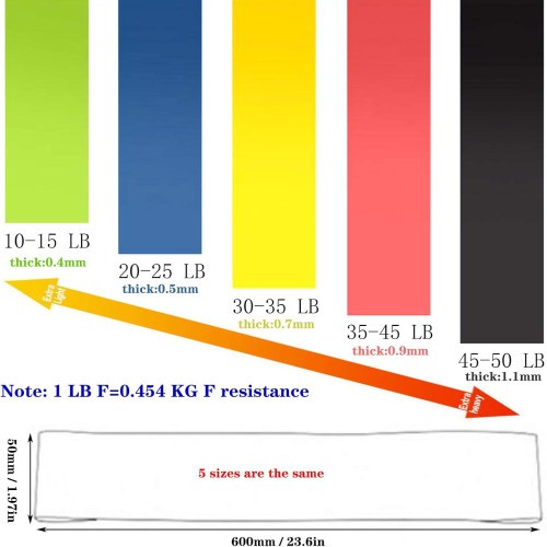 【5 Color Resistance Bands】Unique and elegant colors make you feel comfortable to use. With 5 fitness bands and 5 resistance levels, you can freely choose the right training intensity. These resistance bands are suitable for everyone.