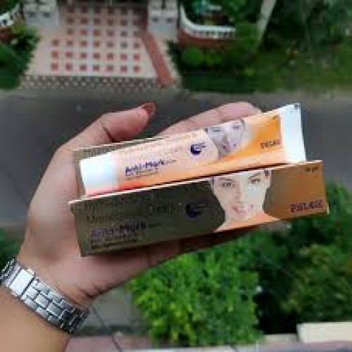Anti-Mark Cream is Hydroquinone, Tretinoin Hydroquinone and Mometasone furoate Cream. This compound widely used in cosmetics for its ability to decrease the skin color, leading to whitening and treating unwanted dark spots. Tretinoin helps to increase the penetration of hydroquinone through the outer skin and preventing the oxidation of hydroquinone. It has also helping to reduce the appearance of some fine wrinkles. Mometasone furoate helps to lessen inflammation on the skin.