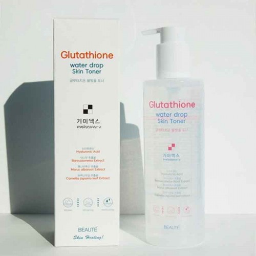 Glutathione Water drop toner contains glutathione(1,000ppm) and peptide components, which are effective for skin whitening and wriknkle improvement Hyaluronic acid is a double functional cosmetic that moisturizes and brightness the area around the eyes This is the first moisturizer skin toner for whitening functions, skin freckles and blemish improvement by combining a large amount of baroussonetia extract niacinamide and morus alba root extract.