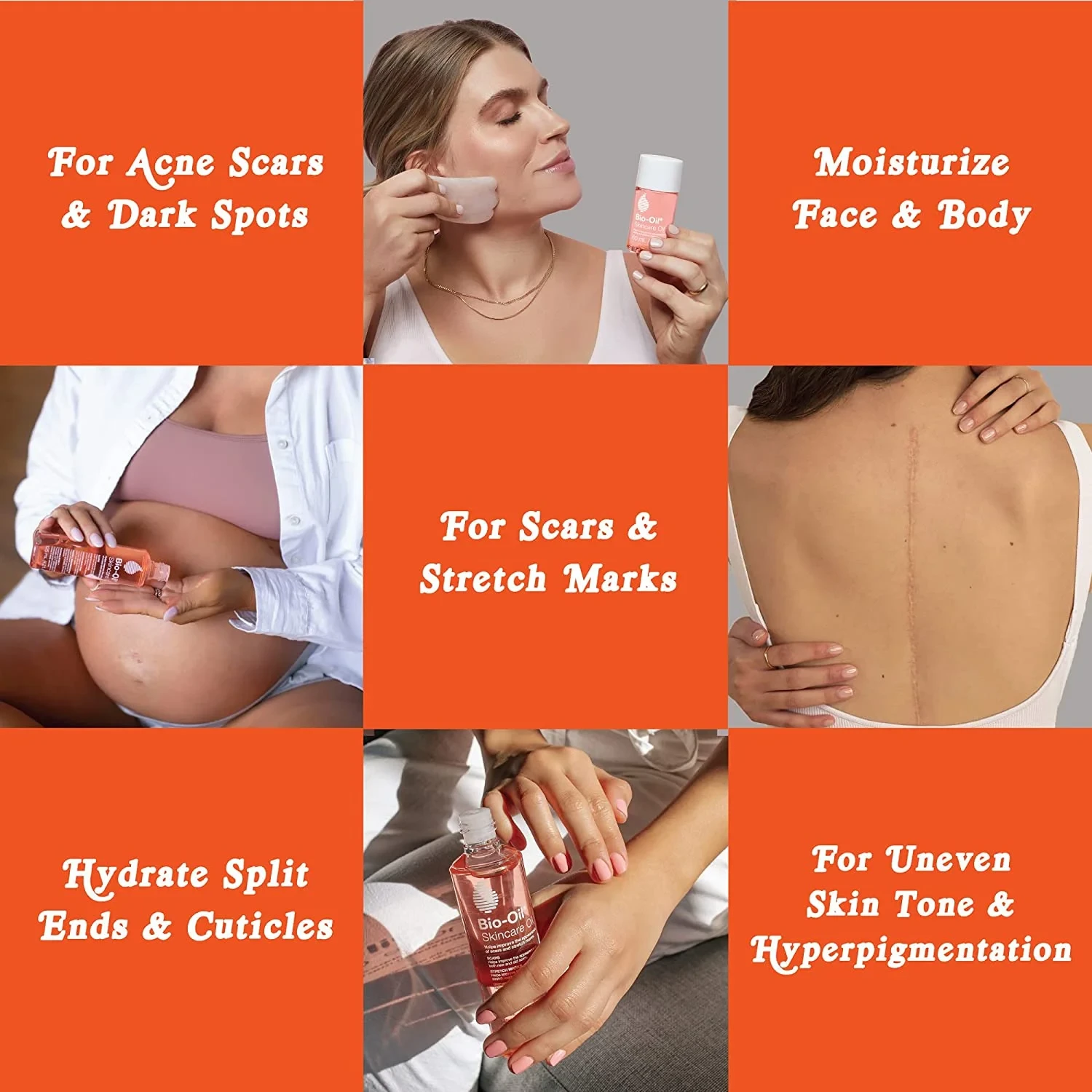 • Bio Oil is a specialist skincare product that helps improve the appearance of scars, stretch marks and uneven skin tone.