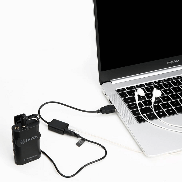 Boya BY-EA2L Adapter is compatible with computers with a USB port. This Cable Adapter is built with three ports, a 3.5mm microphone input jack, a 3.5mm headphone jack, and a USB 2.0 Type-A interface. This adapter is very handy and versatile. You can use this adapter as a bridge between the microphone and the computer, when there is only a USB port on the computer or when you want to hear the sounds from the computer while inputting sound through the microphone.