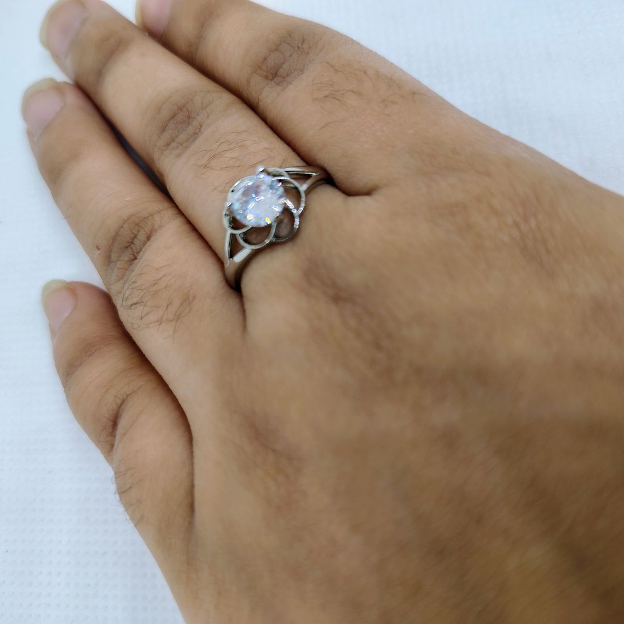 সিলভার ফিনিশিং ও ফ্লাওয়ার প্যাটার্ন ডিজাইনে তৈরি এই Crystal Bloom Silver Ring আপনার হাতের সৌন্দর্য বাড়াবে আরও কয়েক গুণ। মাঝখানে বসানো শাইনি হোয়াইট স্টোন ও ফুলের পাপড়ির মতো ঘিরে রাখা ওপেন ডিজাইন একে করেছে ইউনিক ও ক্লাসি।