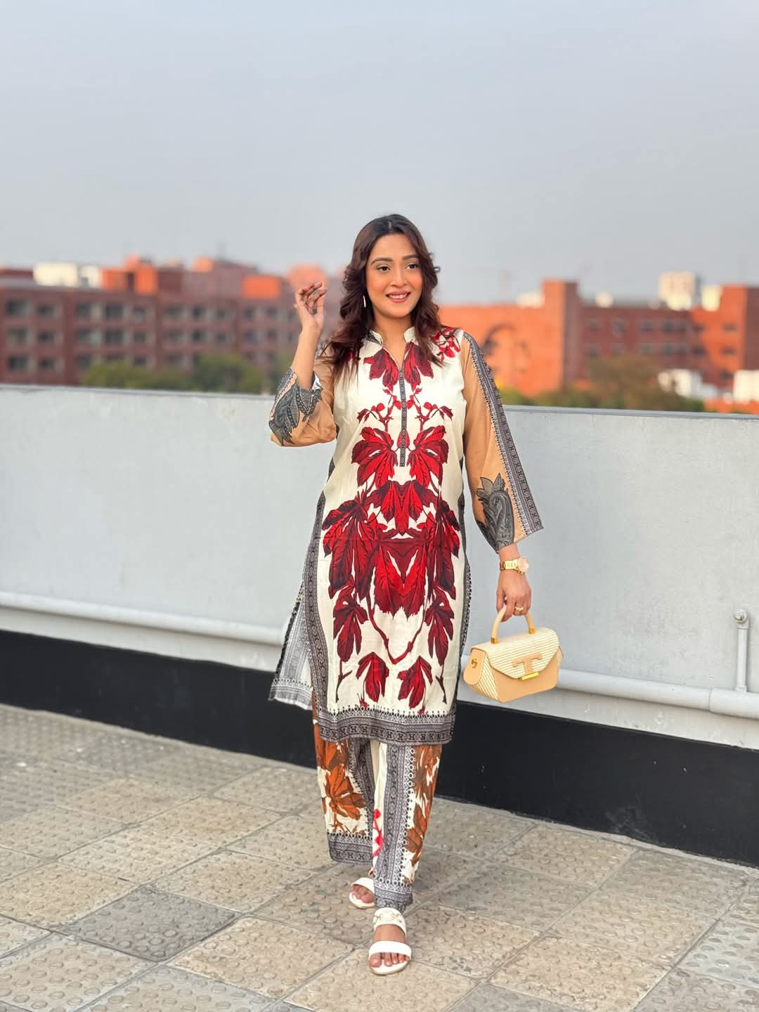 চেরি সিল্ক কাপড়ের ডিজিটাল প্রিন্ট রেডিমেড টু পিস।