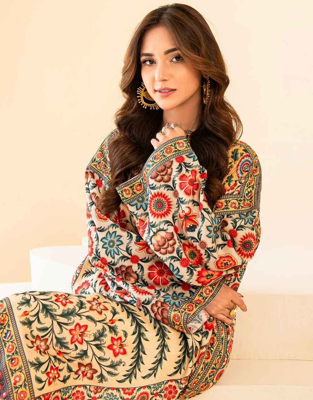 চেরি সিল্ক কাপড়ের ডিজিটাল প্রিন্ট রেডিমেড টু পিস।