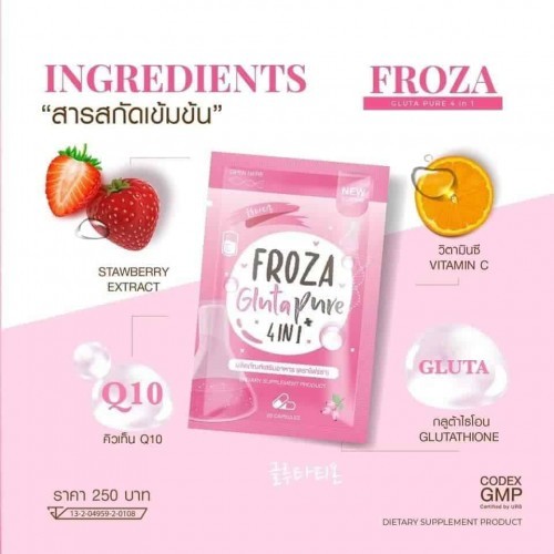 BEWARE OF FAKE FROZA GLUTA PURE ??♀️ FROZA GLUTA PURE 4in1✨ FDA: 13-1-13658-5-000 ? 60 Capsules/ pack INGREDIENTS: ? COLLAGEN - ANTI AGING ? GLUTATHIONE- Liver detox and whitening ?VIT C- immune system booster, glutathione booster ?CO ENZYME Q10- heart, muscle strengthening and anti aging ?ALA- anti aging, glutathione booster ?STRAWBERRY EXTRACT ?-nourish and revitalize skin Froza Gluta Pure 4 in 1 has both Collagen and glutathione. ??combination effects as per studies: ??♀️Whitens skin evenly all through out the body ??♀️Makes skin smoother and healthier ??♀️healthier bones and joints ??♀️stronger nails and shinier hair ??♀️improves sleep ??Benefits ?Powerful antioxidant ?Anti-inflammatory ?May benefit heart health ?Supports healthy immune function ?Brightens and tones skin ?Lab-tested for purity and quality ❌ No Bad side effects ❌ No liver problem disease . ??How to take ? ⏩Fast Track : Take 2softgels in the morning (Empty Stomach, Before Breakfast) ▶️Normal Track : Take 1softgel in the morning (Empty Stomach, Before Breakfast) #glutapure #glutathione #cleansing #liverdetox #whitening