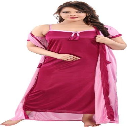 Satin Plain Full Length Women Robe Nighty Type: Nighty with Robe Length: Full Length Fabric: Satin Pattern: Plain Set Includes: 1 Nighty, 1 Robe