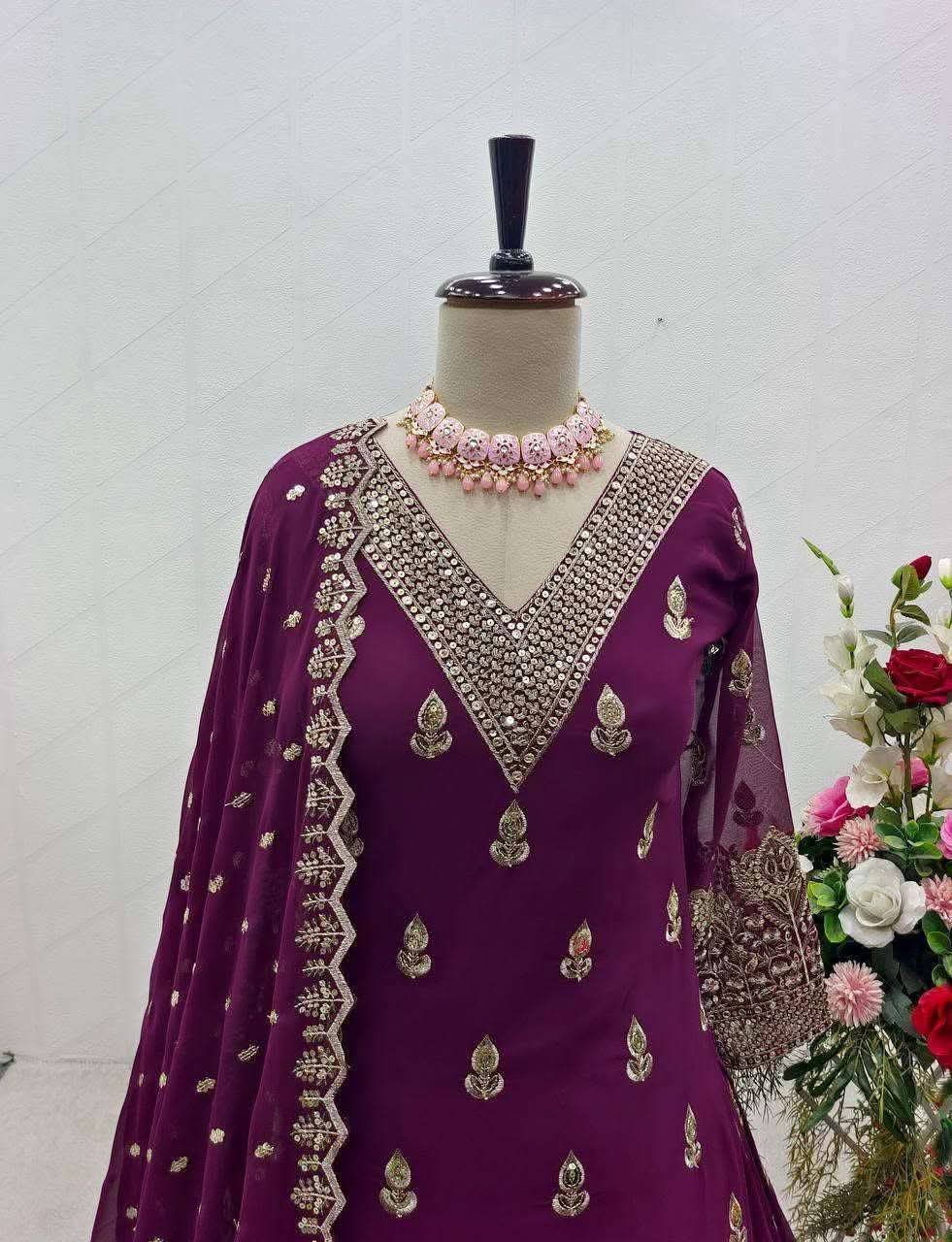 -Fabrics : Premium Soft Jorjet With sequence embroidery And Inner Attached