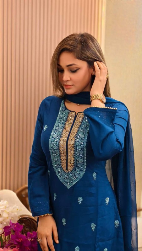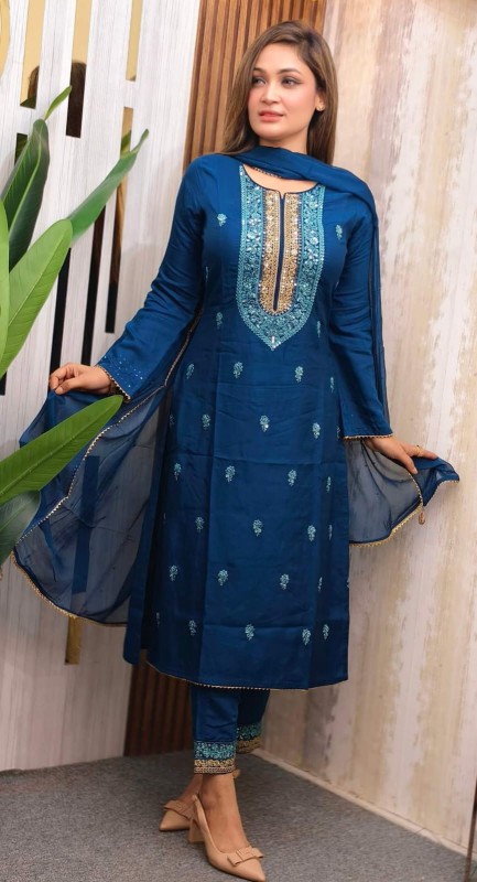 কামিজ লিনেন সিকুয়েন্স এমব্রয়াডারি করা