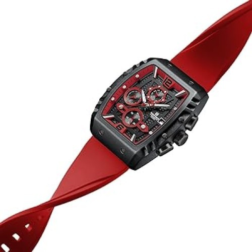 The bold and modern square case design makes a statement. The transparent three-dimensional curved glass and frosted case add unique ornamental value to the watch, while reducing light reflection and making it easier to read the time.