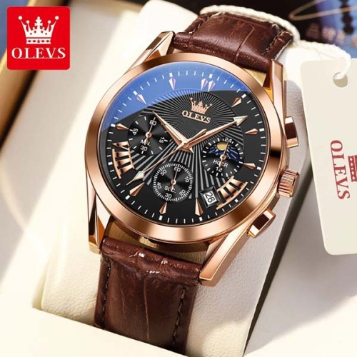 OLEVS 2876 Multifunctional Luxury Genuine Leather Strap Watches in Bangladesh