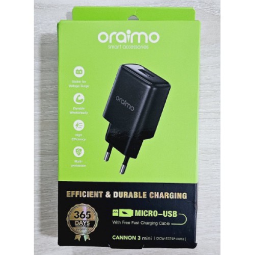 This Oraimo OCW-E37S is efficient and durable wall charging charger that is efficient in use and provides maximum battery charging speed. This charger can do stable charging at a maximum speed of 1.2A. It provides protection against over voltage, voltage regulation and short circuit protection during charging. This charger also comes with a free fast charging cable.
