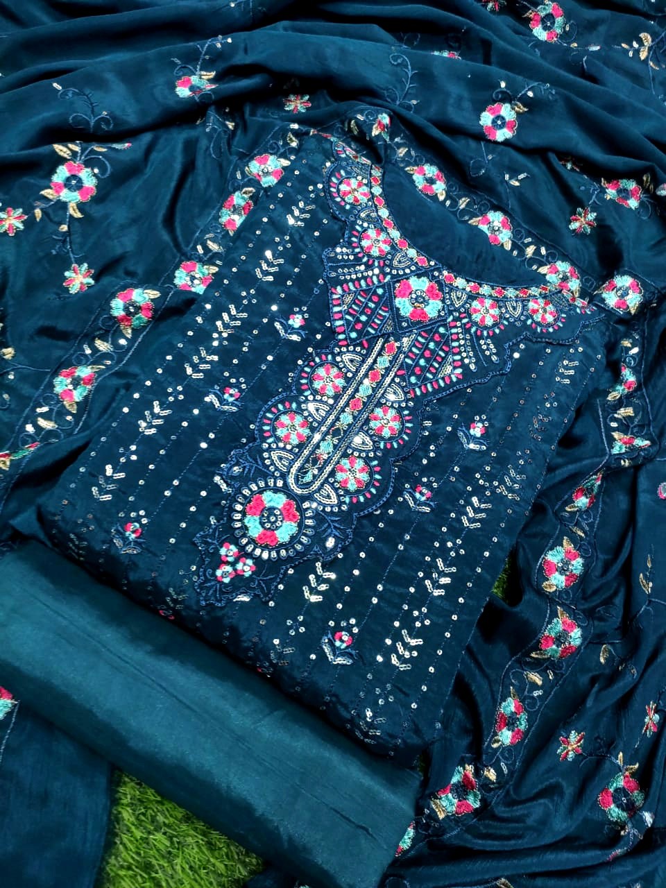 পুরো ওড়নায় এম্বুডারি ও সিকুয়েন্স দিয়ে কাজ করা