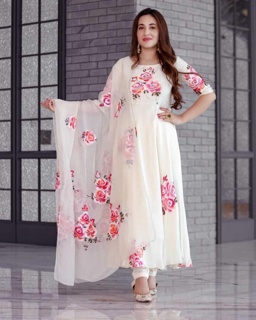 print Gown readymade Three pieces