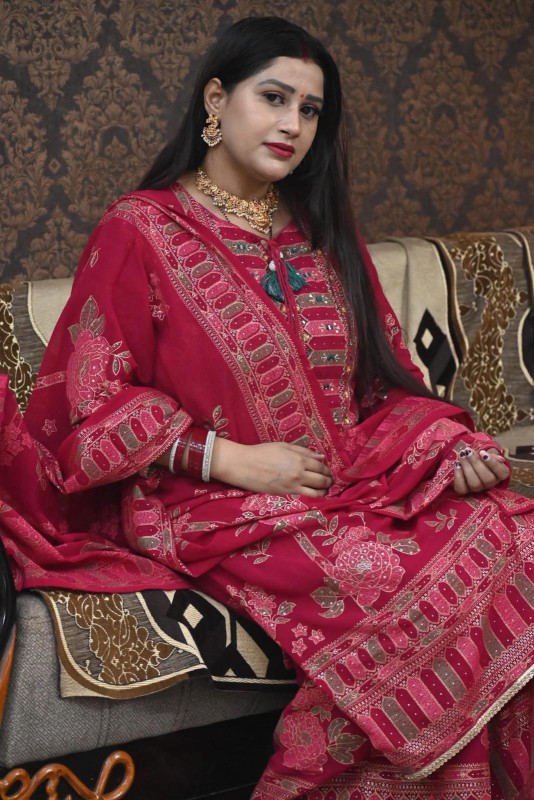 কাজ: ডিজিটাল প্রিন্ট হাতের প্রিমিয়াম কারচুপি কাজ