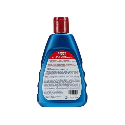 Selsun Blue Pro-X Extra Strength Anti-Dandruff Shampoo is here to the rescue! This powerful anti-dandruff shampoo is formulated with selenium sulfide and natural French Honey extract to effectively treat dandruff and control its recurrence. Plus, it is enriched with Menthol to help soothe your itchy scalp. Get your Selsun Blue Pro-X Extra Strength Anti-Dandruff Shampoo now and get rid of your dandruff for good!
