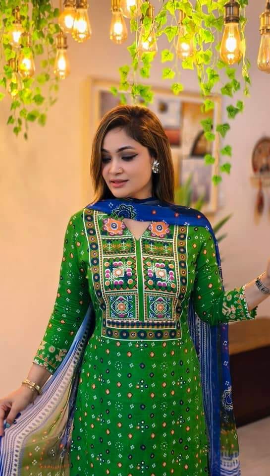 কামিজ লিলেন কাপড়ের স্কিন প্রিন্ট & স্টোন ওয়ার্ক