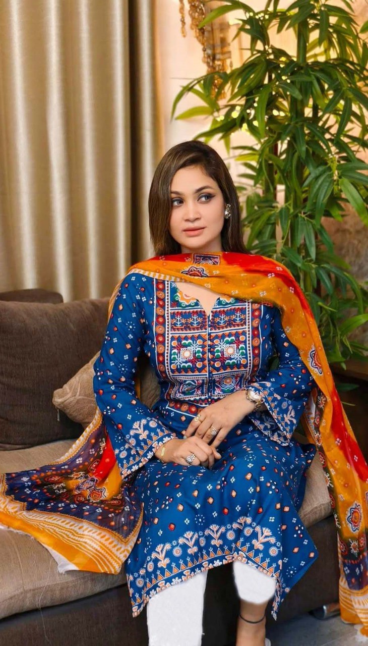 কামিজ লিলেন কাপড়ের স্কিন প্রিন্ট & স্টোন ওয়ার্ক