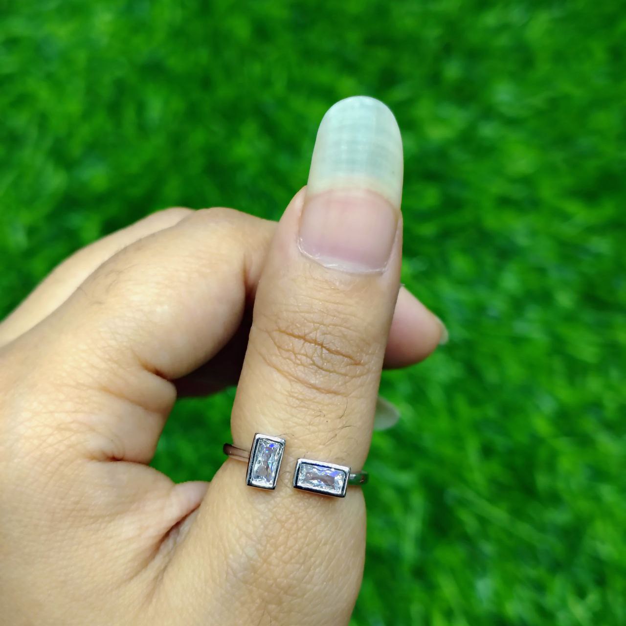 Minimalist beauty meets modern charm in this Twin Spark Open Ring. Designed with two rectangular cubic zirconia stones on each end, the open-front style offers a trendy yet elegant touch. Perfect for everyday wear or gifting to someone special who loves simplicity with a sparkle.