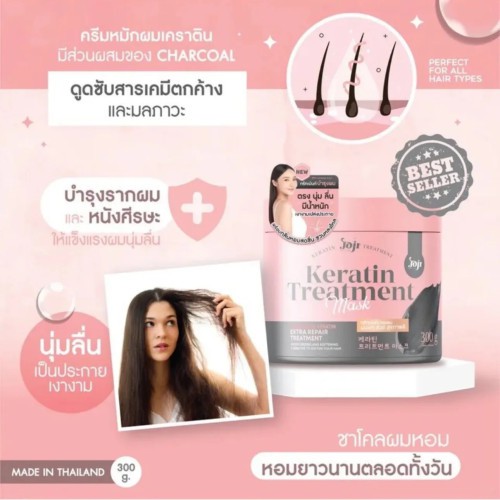A Hair Treatment Helps restore dry, damaged hair and split ends to be soft, smooth, shiny. Add moisture and nourishes the hair to be more healthier. Charcoal helps detox the residual chemicals in the hair. Combining natural values to help adjust hair to be easy to manage and reduce hair loss. Gives a good fragrance to the hair.