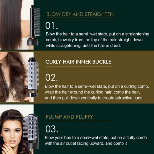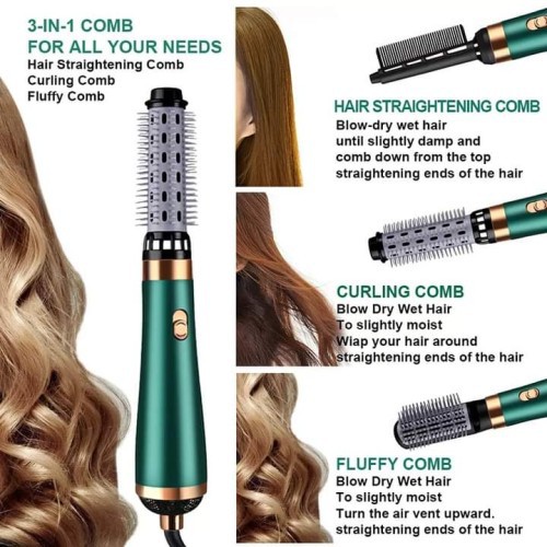 3in1 Innovative Black Technology Hair Dryer and Hot Air Brush Package List: ✴️1*Hair Dryer ✴️3* Hair Style Comb ✴️Multifunctional Professional Hair Straightener ✴️Color: Red, Green ✴️Applicable Hair: Dry&Wet ✴️Item Weight: 393g ✴️3 ইন 1 এটি একটি হেয়ার ড্রায়ার, স্ট্রেইট কোম্ব এবং কার্লিং আয়রন যা আপনাকে স্মুদ বা কার্লি চুলের জন্য একটি পারফেক্ট স্টাইল তৈরি করতে সাহায্য করে। ✴️এটি 3 টি গতিতে আপনি চালানো যায় ❇️তিনটি গতি বেছে নিতে পারেন ❇️ উচ্চ গতির গরম বাতাস , ❇️নিম্ন গতির গরম বাতাস ❇️ উচ্চ গতির ঠান্ডা বাতাস ✴️চুল সুরক্ষা - বুবলিং এবং স্টাইলিং : এটি উচ্চ তাপমাত্রায় চুল শুকানো রোকার আছে যার মাধ্যমে চুলকে শুক্ত করার আগে চুলকে ভালো ভাবেই শুকিয়ে নেয় যা একটি সুন্দর চুলের স্টাইল বজায় থাকে।