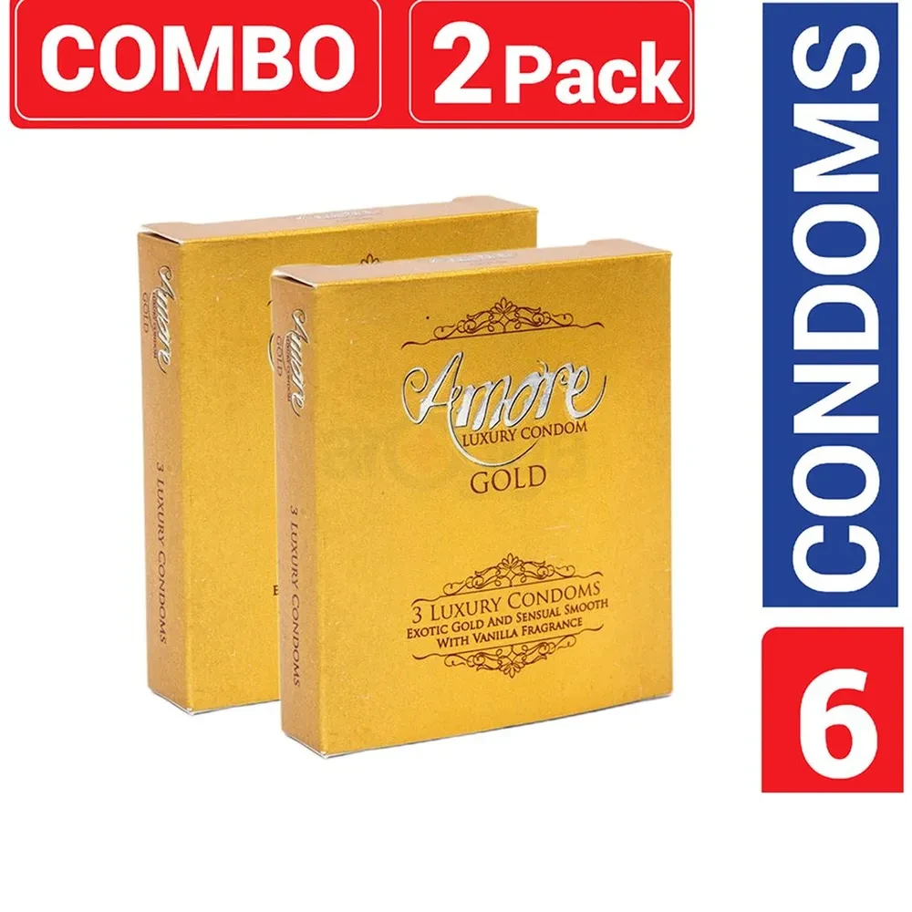 Amore - Luxury Condom Gold  Combo Pack  2 Packs  3x2=6pcs