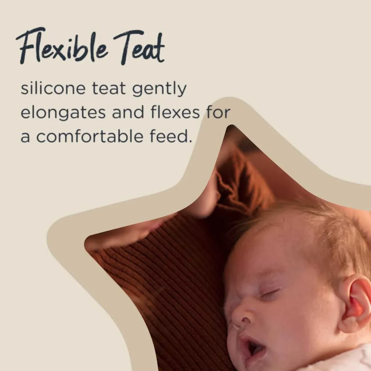 • Breast-like: Our soft silicone teat feels closer to skin and elongates gently for a comfortable feed.
