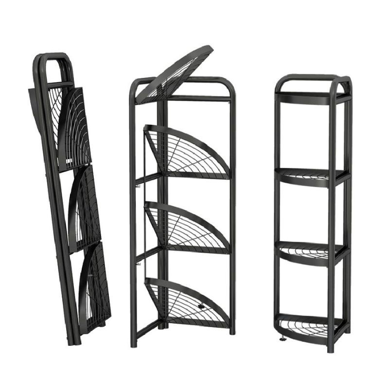 Black Carbon Steel 4-Tier Foldable Corner Shelf