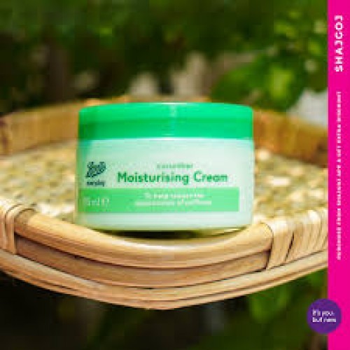 oots Essentials Cucumber Moisturising Cream is enriched with soothing cucumber and vitamins, it is suitable for day or night use and contains antioxidants to help protect the skin from environmental damage.