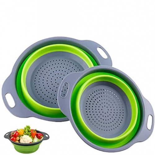 2 Size Collapsible Kitchen Filter Baskets Silicone Colander Strainers Hopper ,polder steamer strainer colander , breville filter basket/b> New space saving design. These colanders collapse to no more then 2 inches high. Now with 2 included sizes 8 inches and 9.5 inches. Ergonomic and comfortable handles. Heat resistant up to 600F. Can be immersed in boiling water. Color: Gray + Green Material: FDA f ood grade, PP + rubber size: Large: 29.2 * 23.7 * 9.2cm Small: 24.6 * 20 * 8.5cm Packing: drain basket x2, opp bag packaging