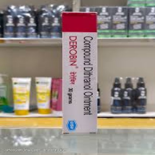 Derobin Ointment is a combination of Dithranol, Salicylic Acid, and Coal Tar. It is used in the treatment of psoriasis (a skin condition that causes red, itchy, scaly patches). It works by breaking down keratin (that forms part of skin structure) clumps which remove dead skin cells and soften the skin. It also works by slowing down the rapid growth of skin cells.