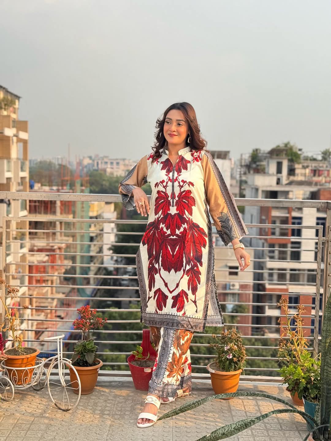 চেরি সিল্ক কাপড়ের ডিজিটাল প্রিন্ট রেডিমেড টু পিস।
