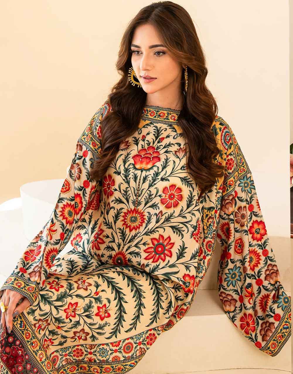 চেরি সিল্ক কাপড়ের ডিজিটাল প্রিন্ট রেডিমেড টু পিস।