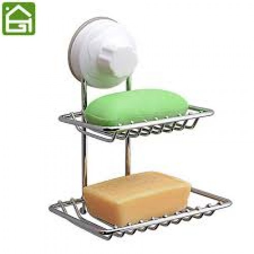 Fashion strong suction cup double layer soap box soap dishes water bunk soap holder stainless steel bath basket