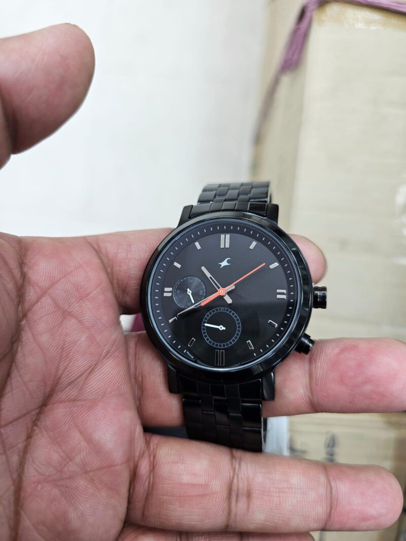 The Fastrack NS3287NM01 Watch is a sought-after accessory in Bangladesh, known for its sleek and modern design that appeals to the youth and style-savvy individuals. This timepiece features a striking black dial paired with a durable stainless steel case and band, exuding a sophisticated yet edgy look. The minimalist dial with clear markers and luminous hands ensures easy readability, while its water-resistant feature adds to its practicality for everyday use. The Fastrack NS3287NM01 Watch has become a favorite in Bangladesh, appreciated for its blend of fashion-forward aesthetics and functional reliability. Its widespread availability through prominent retail outlets and online platforms in the country makes it accessible to a wide range of customers. This watch has carved a niche in the Bangladeshi market, embodying the dynamic lifestyle and contemporary trends of its wearers.