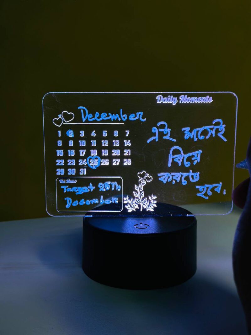 GearUP Multicolor Acrylic Night Lamp with Writable Calendar Board and Erasable Pen