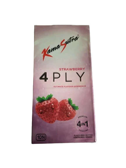 KamaSutra Strawberry Flavor 4PLY 4in1 Dotted, Contoured, Ribbed Condom 10s  3s Pack  India