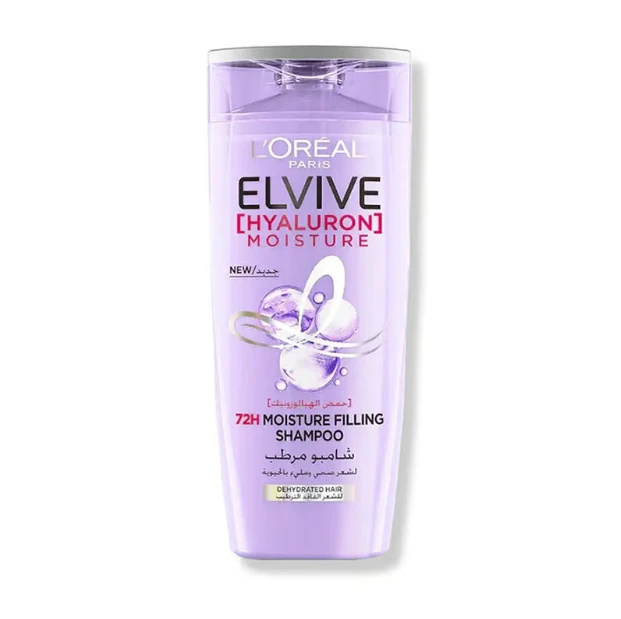 - For Dehydrated, Dry Hair, L’Oréal Paris Elvive Hyaluron Moisture Shampoo with HYALURONIC ACID instantly coats the cuticles and fills hair with 72h moisture. For shinier, 10x more hydrated and revitalized hair with no weighdown.