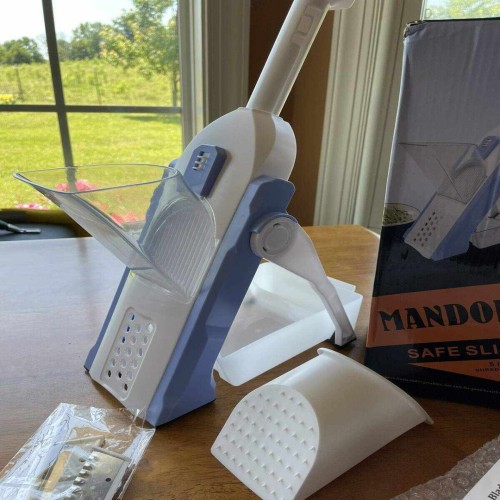 Tired Of Spending All Your Time Cutting Vegetables? Get rid of this trouble and let the smart cutters do your job instead! The retractable handle and folding bracket make the adjustable vegetable cutter Also get a knife-like cutter that doesn’t hurt your hand. Ideal kitchen pal for safe, fast, and efficient cooking. Cutter blades are sharp enough to cut most of the vegetables, fruits, etc. Safe To Use The vegetable slicer was designed with a built-in blade. The blades are safely hidden to prevent your hand from touching the blade, making this mandoline safer, even if you don't have safe gloves. Versatile Our Multifunctional Vegetable Slicer offers multiple slicing choices without changing the blade. The mandoline cuts perfectly-even slices from 0.1-8mm in thickness while also offering julienne, matchstick, and dicing options. High Quality The food chopper is made of high-quality material passing FDA, LFGB, and BPA FREE. This is ideal for cutting potatoes, onions, and other vegetables and fruit. Easy To Clean The vegetable cutter is easy to clean. You can easily remove food residues under the tap with the small brush we gifted. Our kitchen mandoline dicer has a collapsible design. After cleaning, you can fold and tuck it away into your cabinet or drawer after use. This also makes it easier to bring anywhere. Specifications Material: ABS+Stainless Steel 420 Product Size: 34*23*13cm Product use: Shred, Slice, Dice, Wave Slice Package Includes 1 X Multifunctional Vegetable Slicer