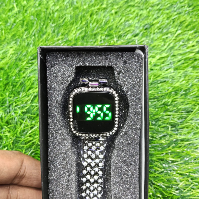 New Trend Fashion Steel Chain Diamond Women Watch Full Diamond Touch Screen LED Water Diamond Bracelet Watch (black)