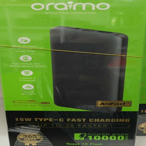 Oraimo 15W 10000mAh Power Bank Type C (OPB-1100) - Black
