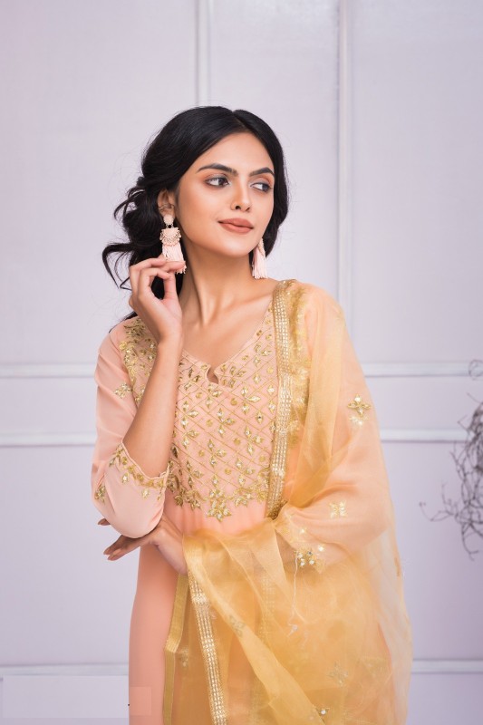 ওড়না - অর্গানজা সাথে হেভি ডলার এমব্রয়ডারি কাজ করা