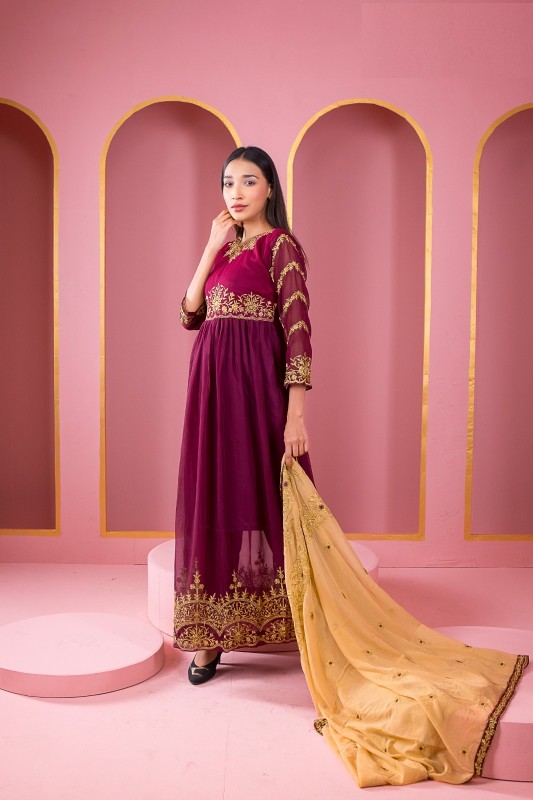 ওড়না - জর্জেট সাথে এমব্রয়ডারি কাজ করা