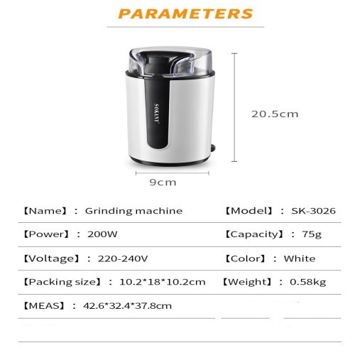 Product details of Sokany Latest Design 200w High Efficiency Blade Coffee Grinder Household Electric Coffee Grinder Multi Function Grinder