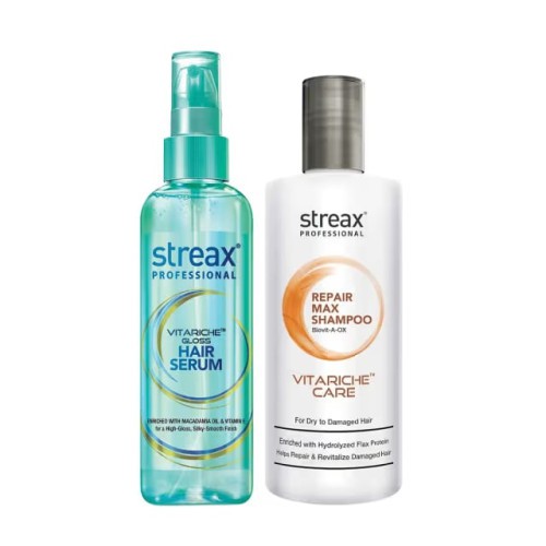 Streax Professional Vitariche Gloss Hair Serum 115ml with Free Streax Repair Max Shampoo